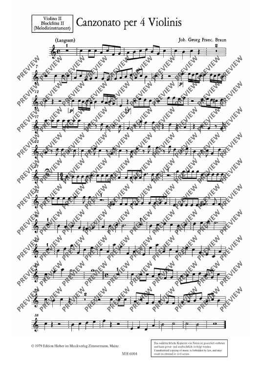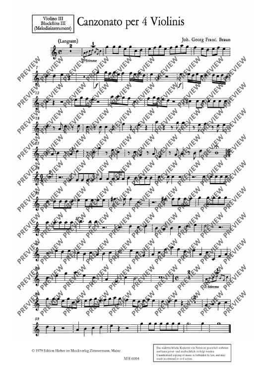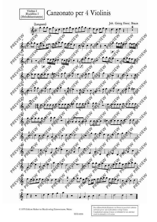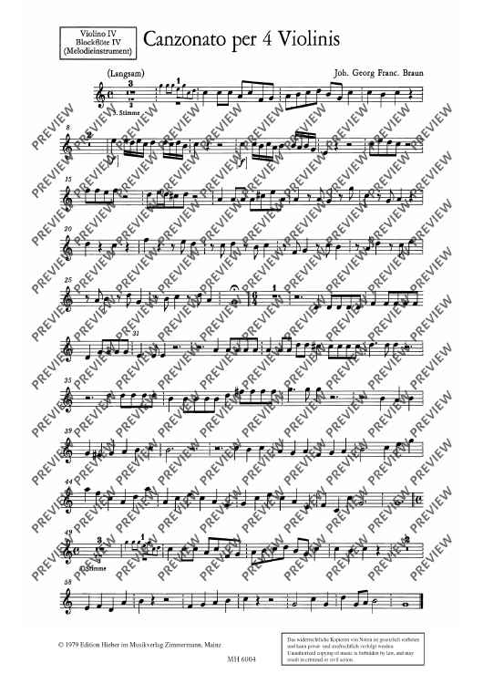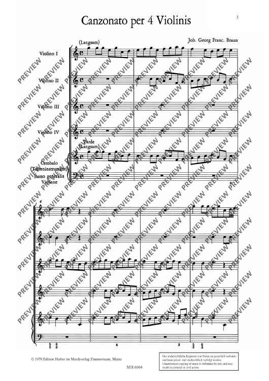 "Canzonato - Score and Parts" Sheet Music by Johann Georg Franz Braun
