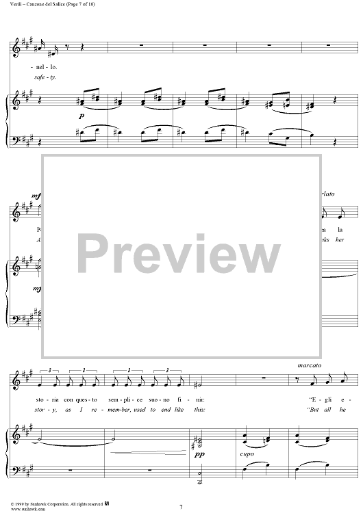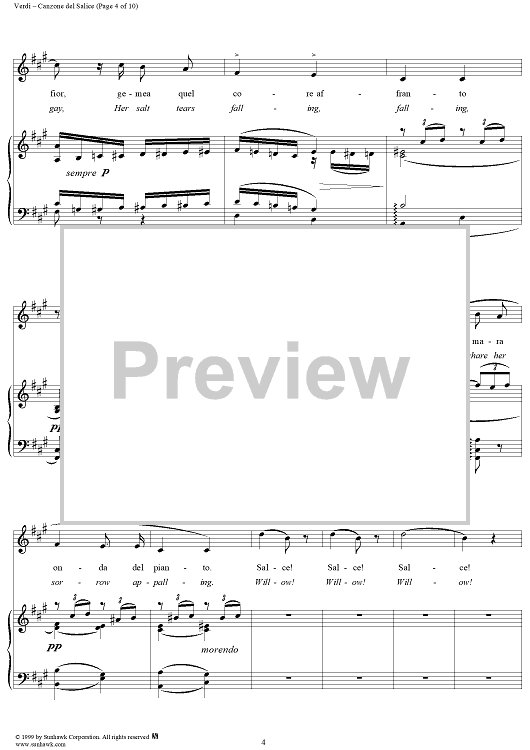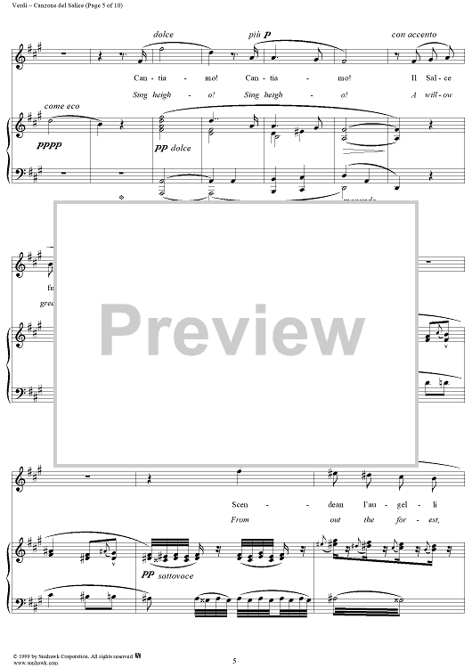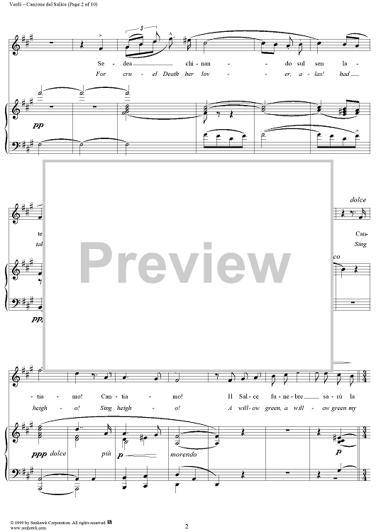 Digital Sheet Music for Canzone del Salice by Giuseppe Verdi, Arrigo Boito scored for Voice/Piano; id:112614
