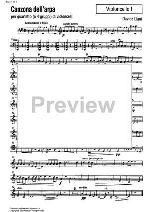 Digital Sheet Music for Canzone dell'arpa (Song of the harp) - Cello 1 by , Davide Liani scored for 4 Cellos/Orchestra; id:350447