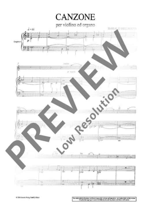 Digital Sheet Music for Canzone by Harald Heilmann scored for Violin And Organ; id:495456