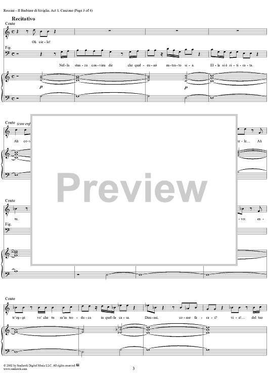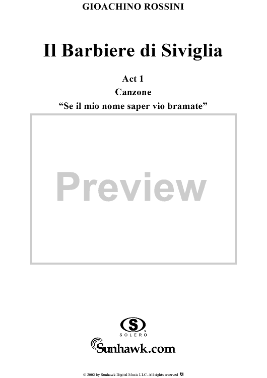 Digital Sheet Music for Canzone: Se il mio nome, No. 5 from "Il Barbiere di Siviglia" - Full Score by Gioachino Rossini scored for Voice and Orchestra; id:290475