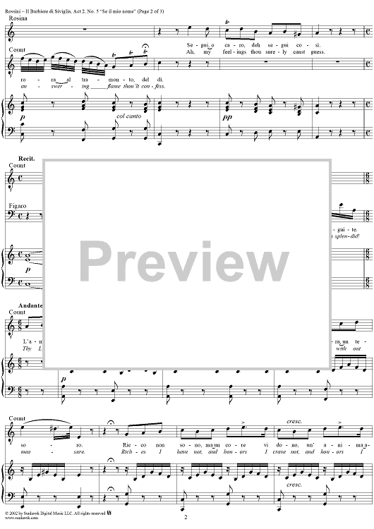 Digital Sheet Music for Canzone: Se il mio nome, No. 5 from "Il Barbiere di Siviglia" by Gioachino Rossini, Cesare Sterbini scored for Voice/Piano; id:290599