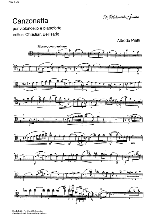 "Canzonetta - Cello" Sheet Music by Alfredo Piatti
