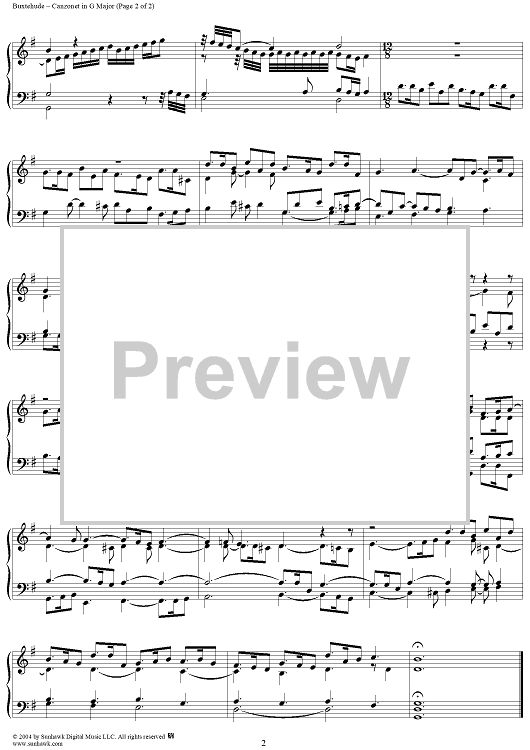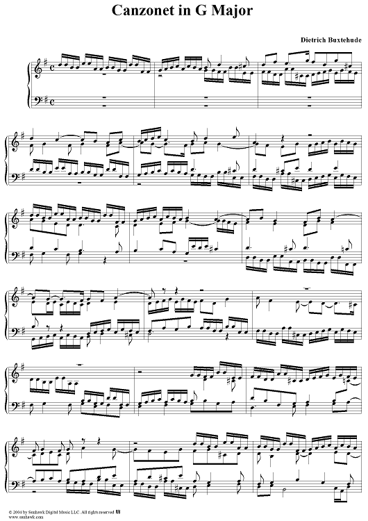 Digital Sheet Music for Canzonetta in G Major by Dietrich Buxtehude scored for Organ Solo; id:302926