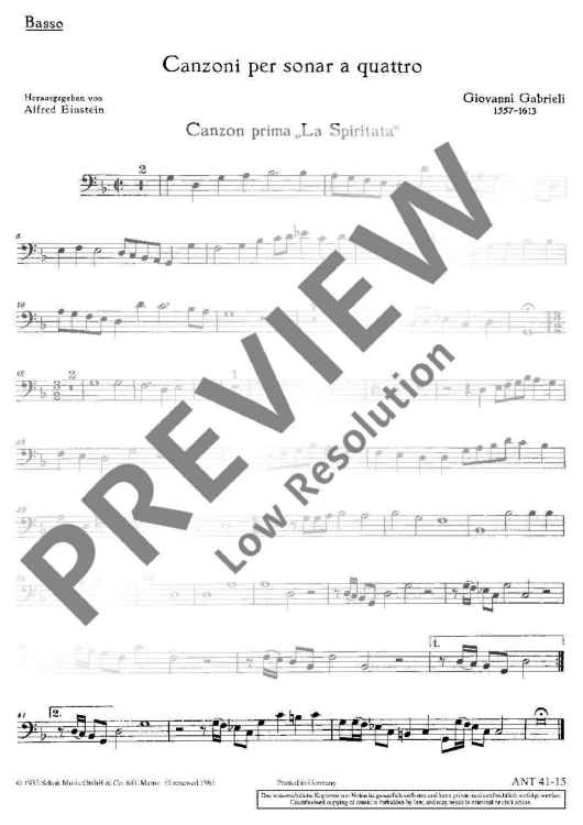 Digital Sheet Music for Canzoni - Basso by Giovanni Gabrieli scored for Various Instruments (satb); Basso Continuo Ad Libitum; id:471018