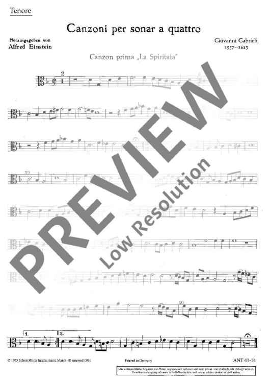 "Canzoni - Tenore, Alto Clef" Sheet Music by Giovanni Gabrieli