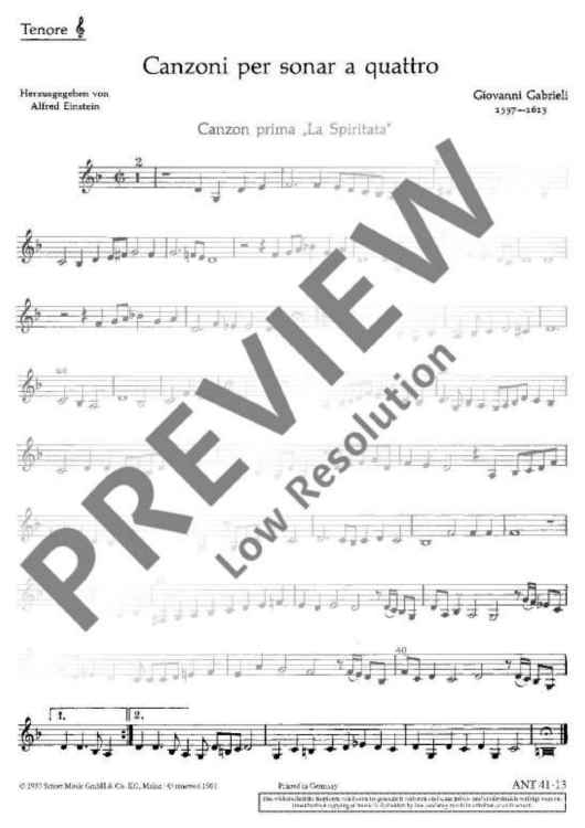 "Canzoni - Tenore, Treble Clef" Sheet Music by Giovanni Gabrieli