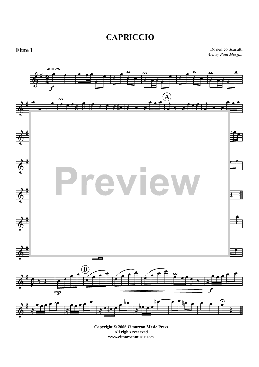 Digital Sheet Music for Capriccio - Flute 1 by , Domenico Scarlatti, Paul Morgan scored for Flute Trio; id:356195