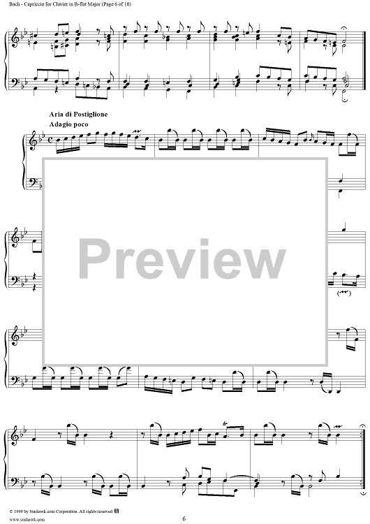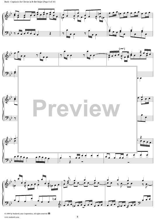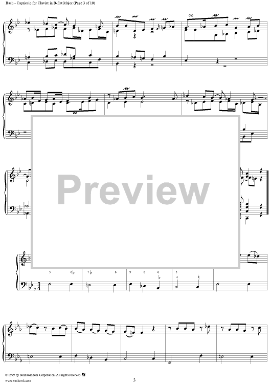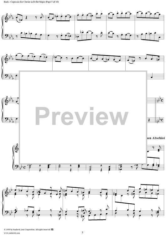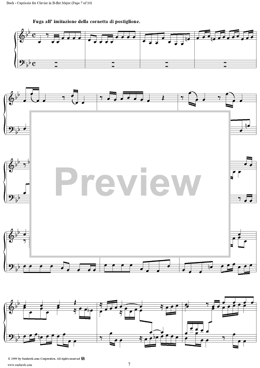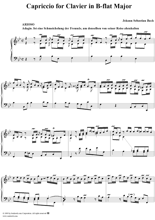 Digital Sheet Music for Capriccio for Clavier in B-Flat Major (BWV 992) by Johann Sebastian Bach scored for Piano Solo; id:241509