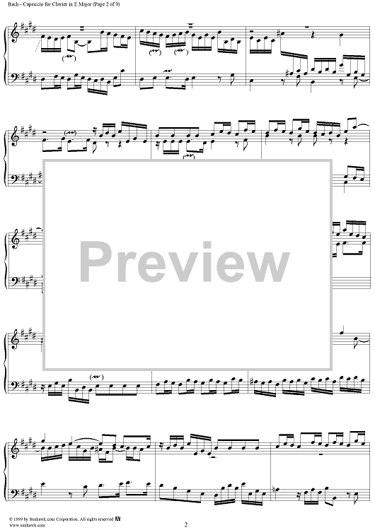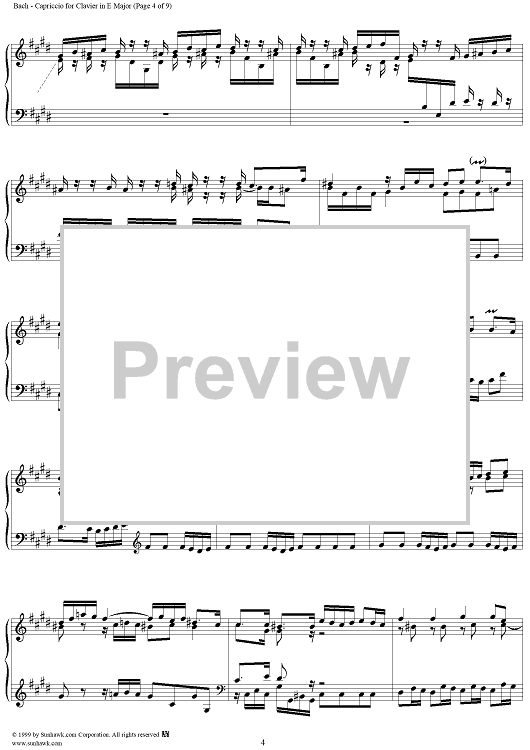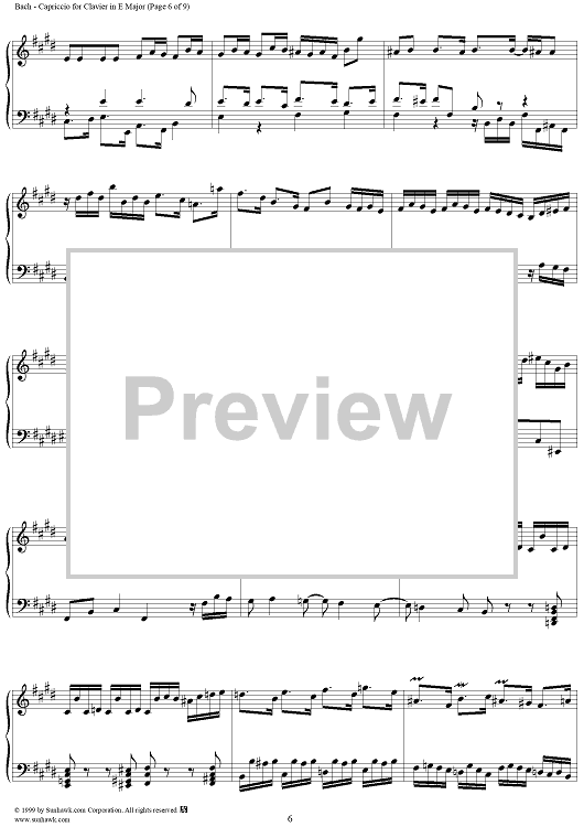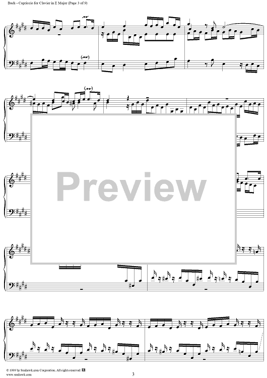 Digital Sheet Music for Capriccio for Clavier in E Major (BWV 993) by Johann Sebastian Bach scored for Piano Solo; id:241510