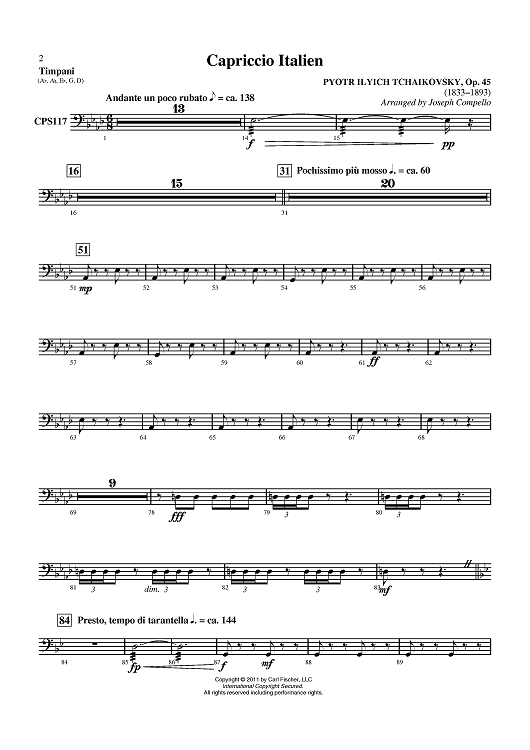 Digital Sheet Music for Capriccio Italien - Timpani by Joseph Compello, Peter Ilyich Tchaikovsky scored for Concert Band; id:420236