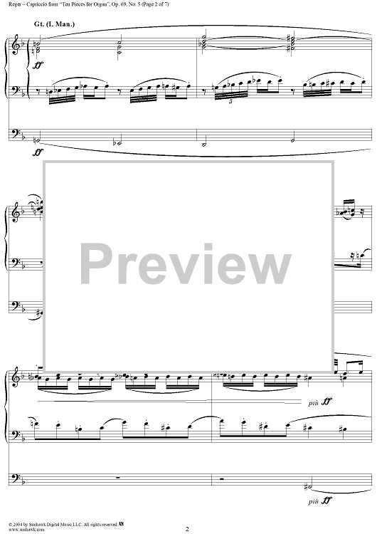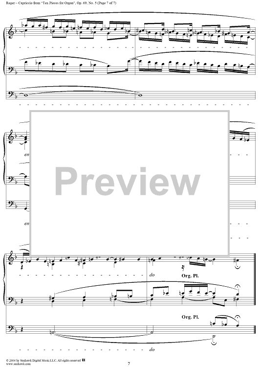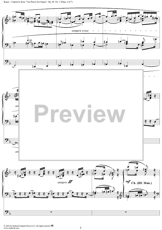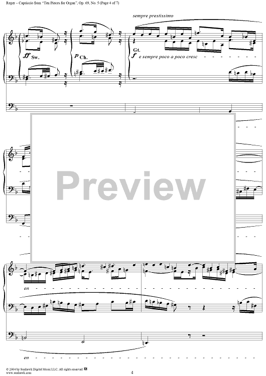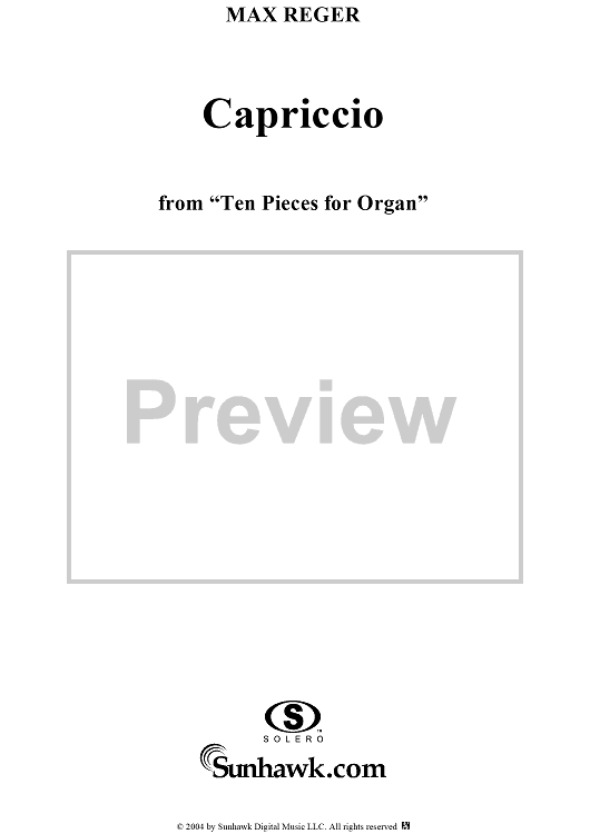 Digital Sheet Music for Capriccio, No. 5 from "Ten Pieces for Organ", Op. 69 by Max Reger scored for Organ Solo; id:297886