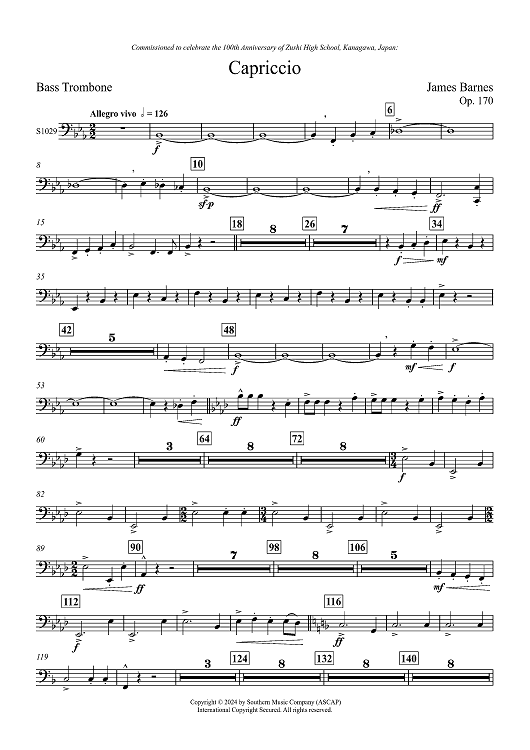 Digital Sheet Music for Capriccio, Op. 170 - Bass Trombone by James Barnes scored for Concert Band; id:504311