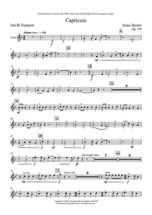 "Capriccio, Op. 170 - Bb Trumpet 2" Sheet Music by James Barnes