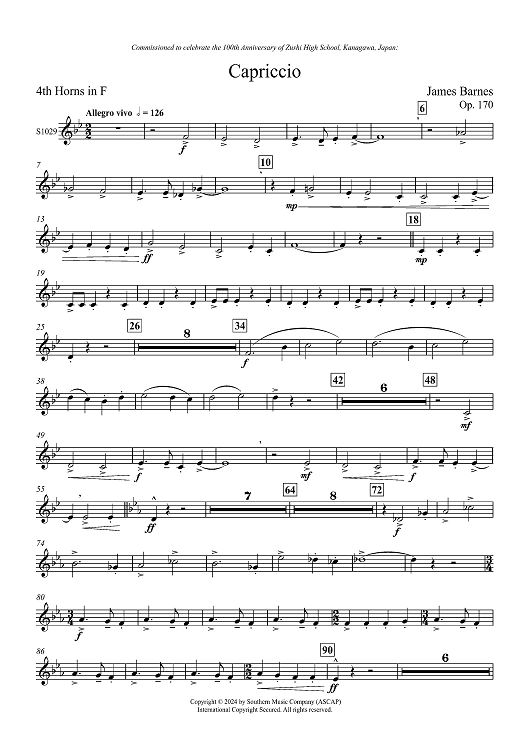 Digital Sheet Music for Capriccio, Op. 170 - F Horn 4 by James Barnes scored for Concert Band; id:504307