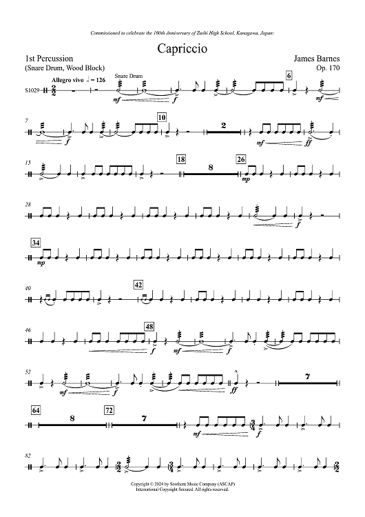 "Capriccio, Op. 170 - Percussion 1" Sheet Music by James Barnes