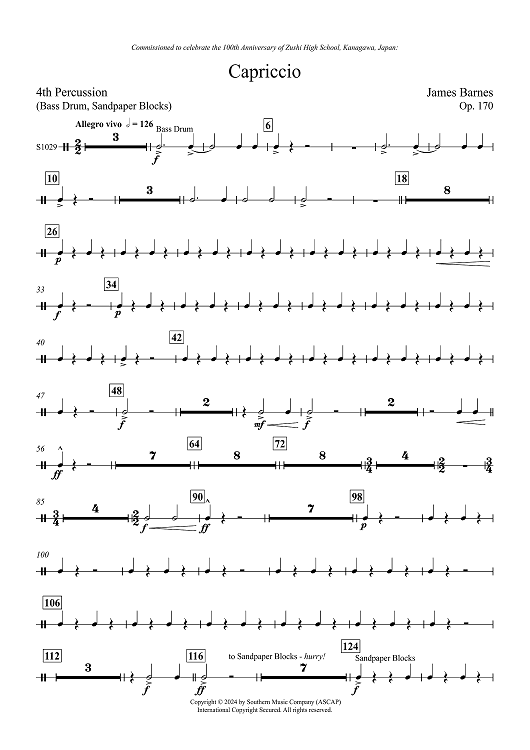 Digital Sheet Music for Capriccio, Op. 170 - Percussion 4 by James Barnes scored for Concert Band; id:504322