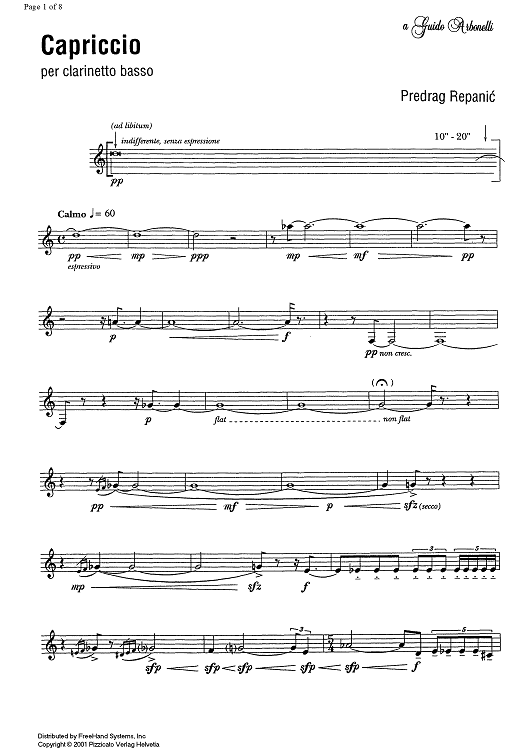 Digital Sheet Music for Capriccio by , Predrag Repanic scored for Bass Clarinet; id:336286