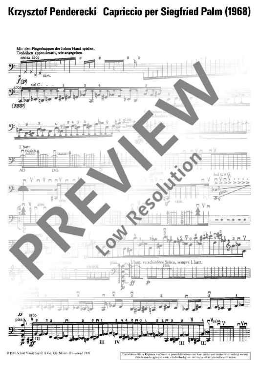 Digital Sheet Music for Capriccio per Siegfried Palm by Krzysztof Penderecki scored for Cello; id:473535