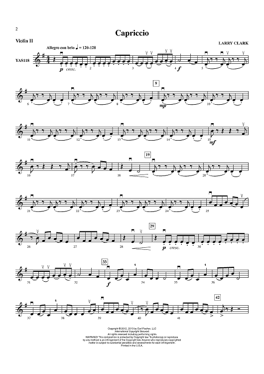 "Capriccio - Violin 2" Sheet Music by Larry Clark
