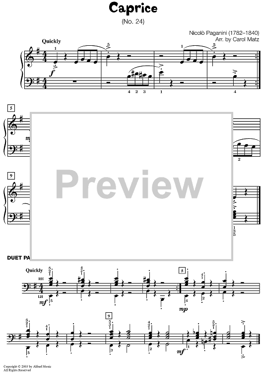Digital Sheet Music for Caprice (No. 24) by Niccolò Paganini, Carol Matz scored for Piano; id:471226