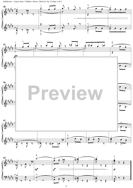 Digital Sheet Music for Caprice by Dmitri Kabalevsky scored for Piano Solo; id:287502