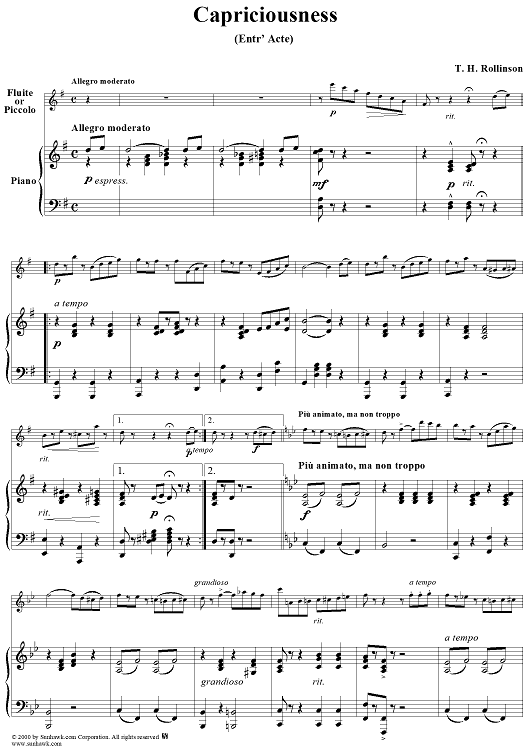 Digital Sheet Music for Capriciousness (Entr' Acte) by T. H. Rollinson scored for Flute/Piano; id:255967