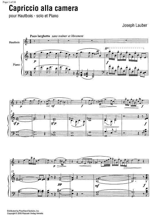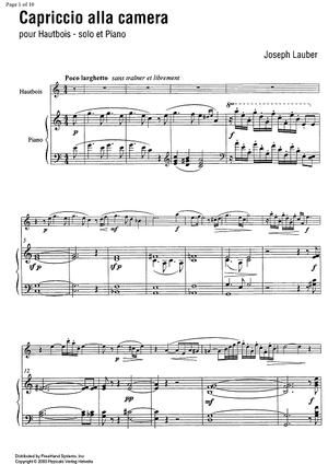 Digital Sheet Music for Caproccio alla camera - Score by , Joseph Lauber scored for Oboe/Piano; id:350805
