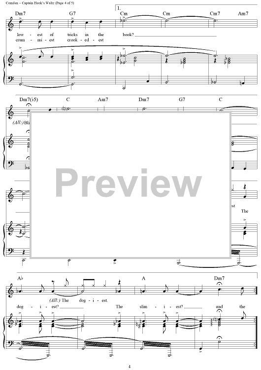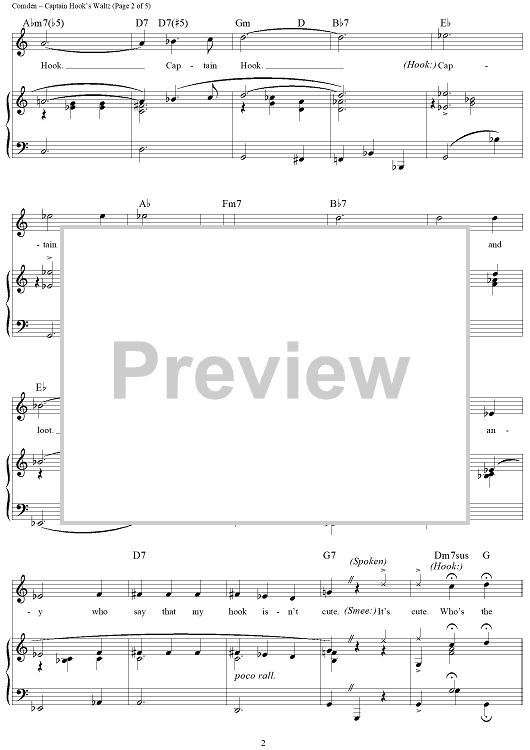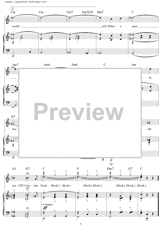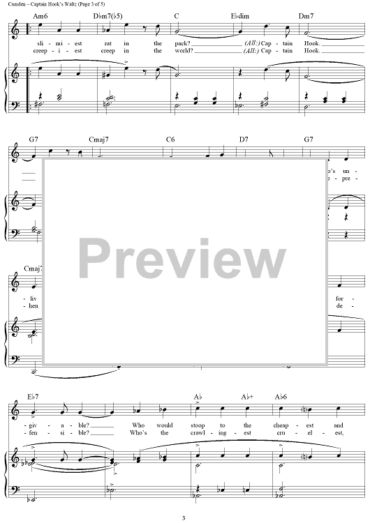Digital Sheet Music for Captain Hook's Waltz by Jule Styne, Betty Comden, Adolph Green scored for Piano/Vocal/Chords; id:432900