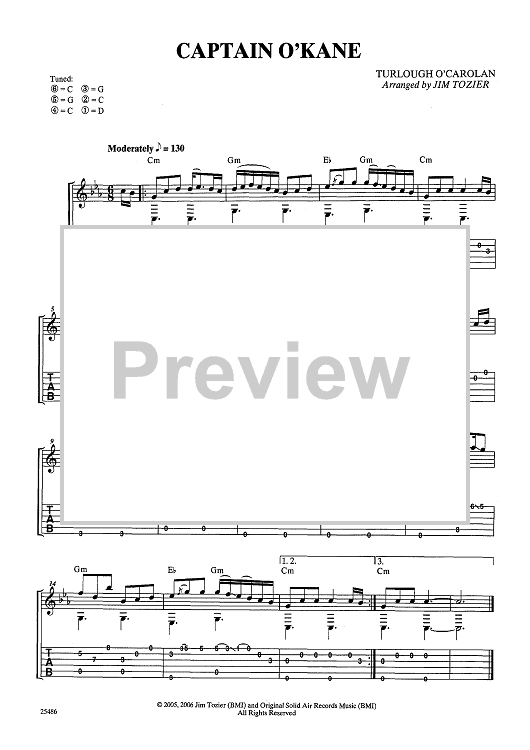 Digital Sheet Music for Captain O'Kane (With Embedded Audio) by Turlough O'Carolan, Jim Tozier scored for Guitar Tab; id:451629