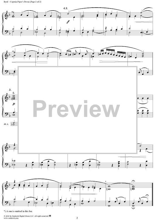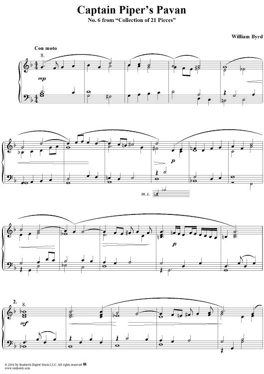 Digital Sheet Music for Captain Piper's Pavan by William Byrd scored for Organ Solo; id:296681