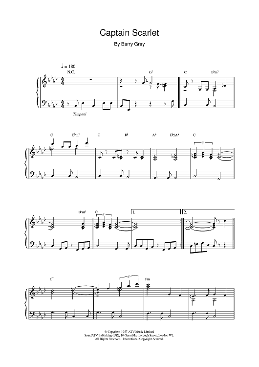 Digital Sheet Music for Captain Scarlet by Barry Gray scored for Piano; id:377152