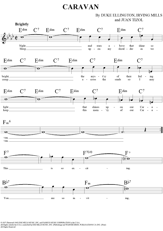 Digital Sheet Music for Caravan by Duke Ellington, Irving Mills, Juan Tizol scored for Lead Sheet; id:109230