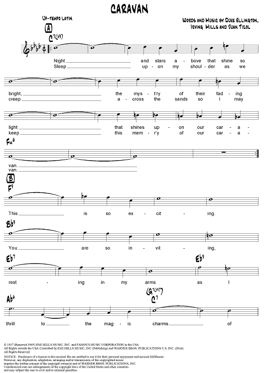 Digital Sheet Music for Caravan by Duke Ellington, Irving Mills, Juan Tizol scored for Lead Sheet; id:312152