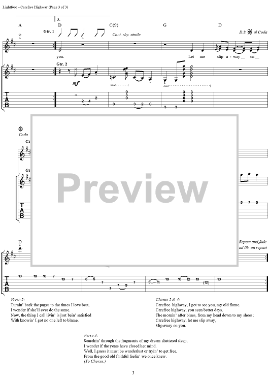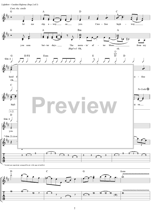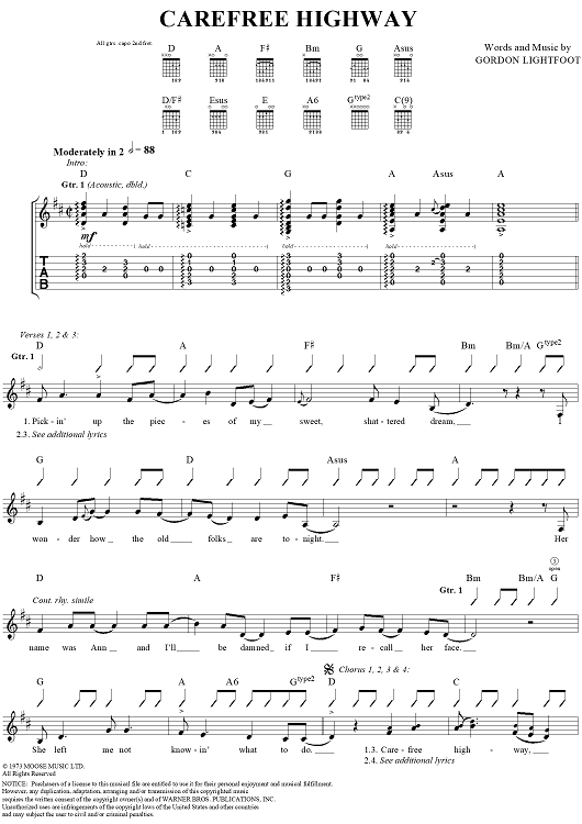 "Carefree Highway" Sheet Music by Gordon Lightfoot