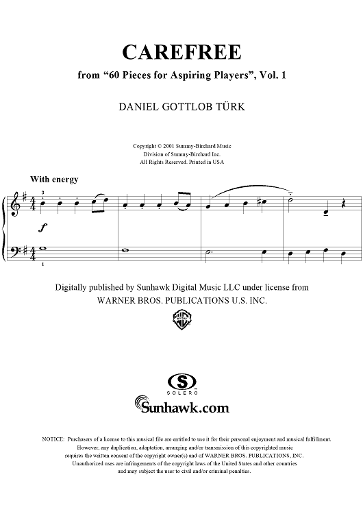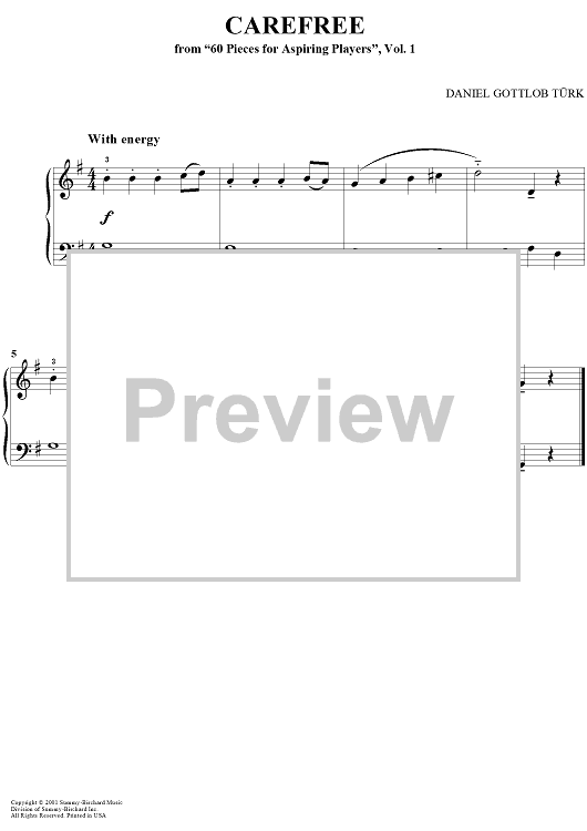 Digital Sheet Music for Carefree by Daniel Türk scored for Easy Piano; id:289518