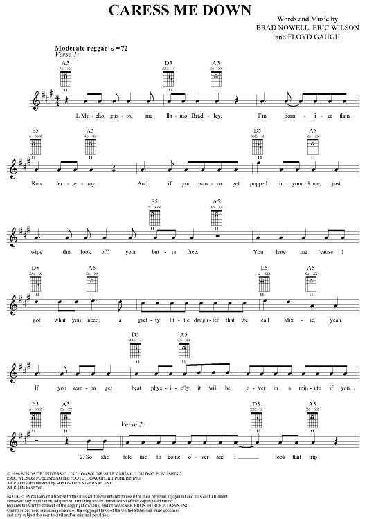 Digital Sheet Music for Caress Me Down by Sublime, Eric Wilson, Brad Nowell, Floyd Gaugh scored for Easy Guitar/Vocal; id:289686