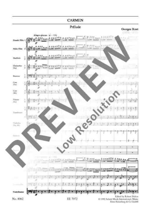 “Carmen” is one of the most frequently performed operas in the world and the genesis of the work is exceptionally well documented. In spite of this, none of the editions published after the composer’s death correspond to his intentions. Now Didion’s edition, of which a piano reduction (ED 7965) has already been published, at last reproduces the work as intended by Bizet. This new edition of the score draws on detailed study of sources not previously used.