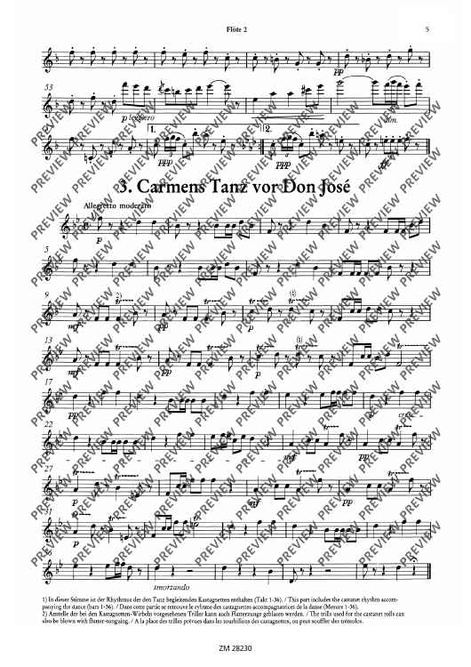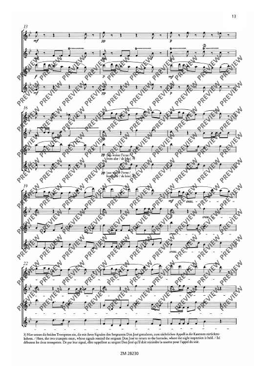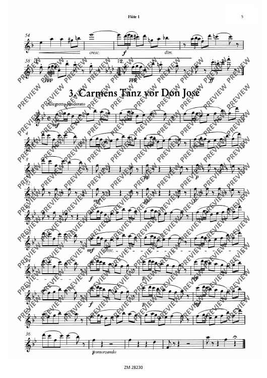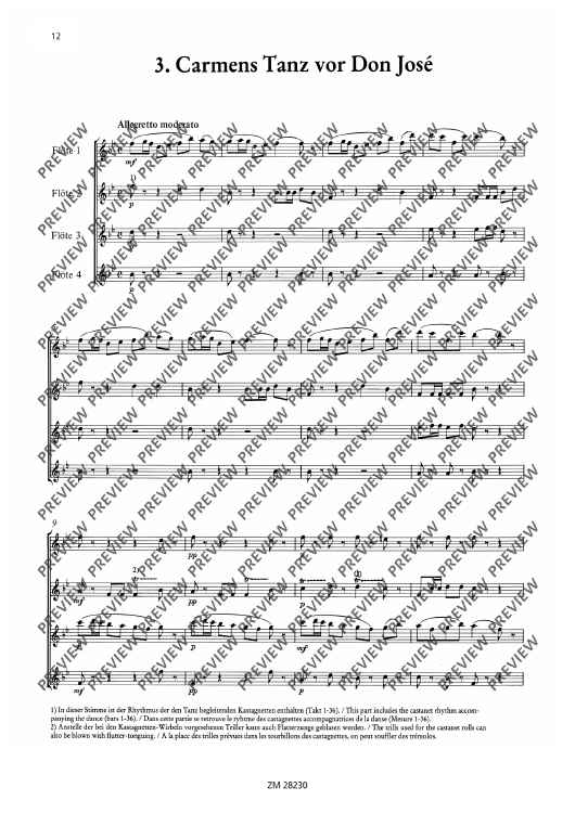 Die Bearbeitung ist in der Stimmverteilung ausgewogen, d.h. die tragende Stimme liegt nicht immer in der 1. Flöte, sondern wandert durch alle Partien. Der Schwierigkeitsgrad liegt im mittleren Bereich. Gute rhythmische Sicherheit und ausgeglichene Intonation sind allerdings Voraussetzung für eine adäquate Umsetzung der Musik Bizets.