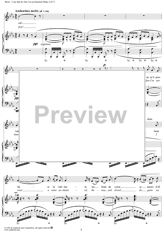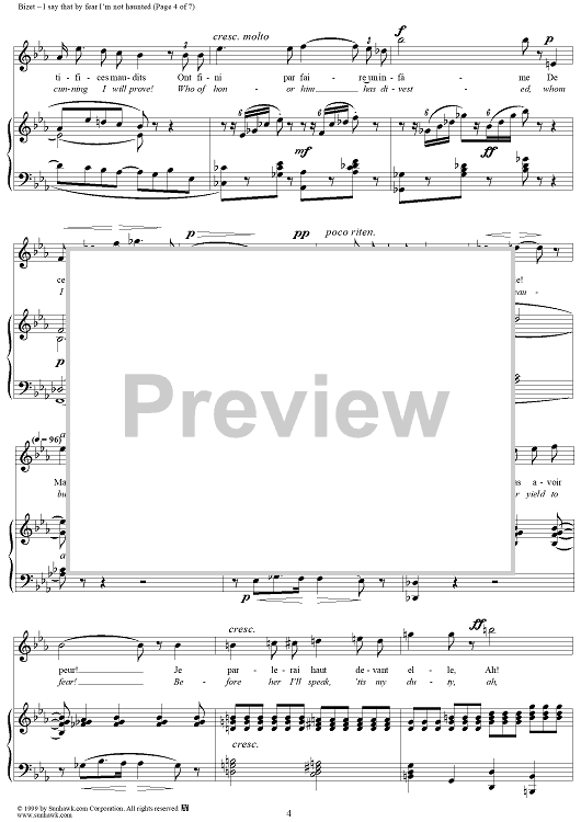 Digital Sheet Music for Carmen, Je dis, que rien ne m'épouvante, (I say that by fear I'm not haunted) by Georges Bizet scored for Voice/Piano; id:253849