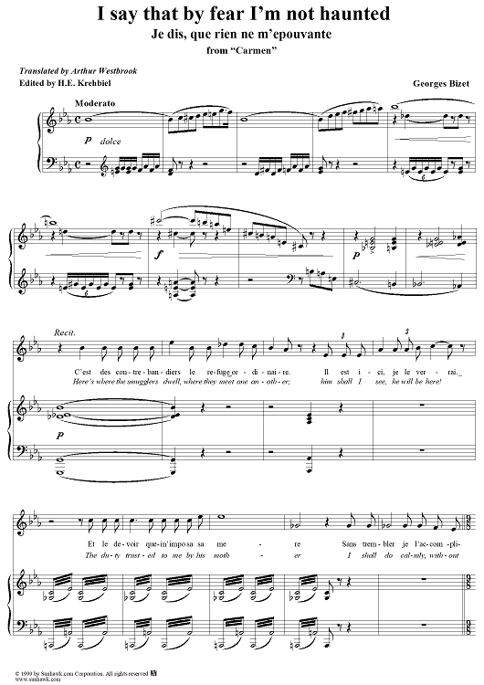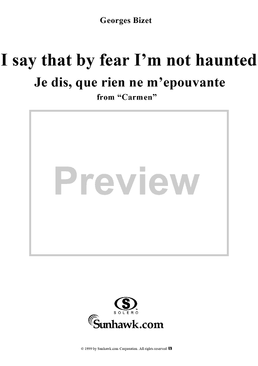 "Carmen, Je dis, que rien ne m'épouvante, (I say that by fear I'm not haunted)" Sheet Music by Georges Bizet