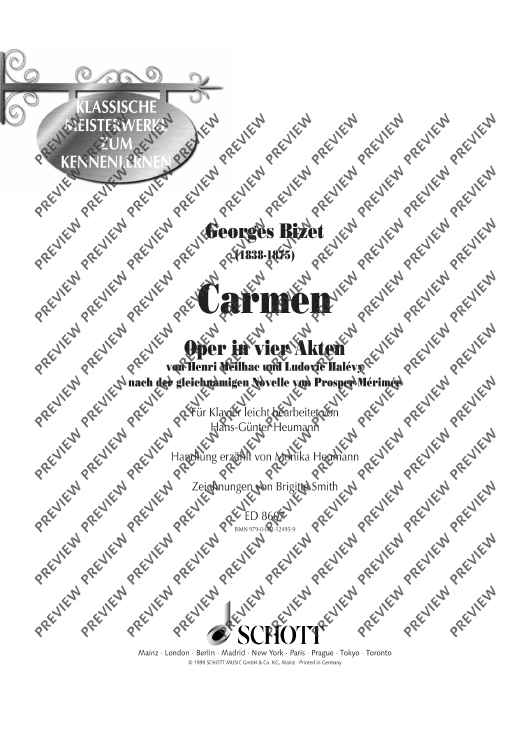 Bizet's 'Carmen' is one of the most famous operas of all time. Love, jealousy, murder, vast choral set pieces, and overwhelming passion combined with a colourful Spanish setting are sure-fire ingredients for a world-wide success. All the most beautiful tunes from this opera - including the Habanera - have been arranged in easy versions by Hans-Günther Heumann. The pretty illustrations, in colour throughout, add to the attractiveness of this volume.