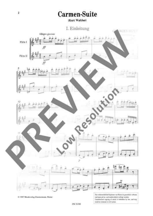 Opern für zwei Flöten sind beliebt. Darum hat Walther aus Carmen einige Zugnummern eingerichtet.