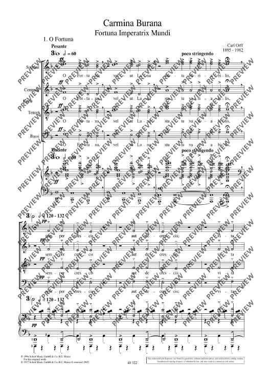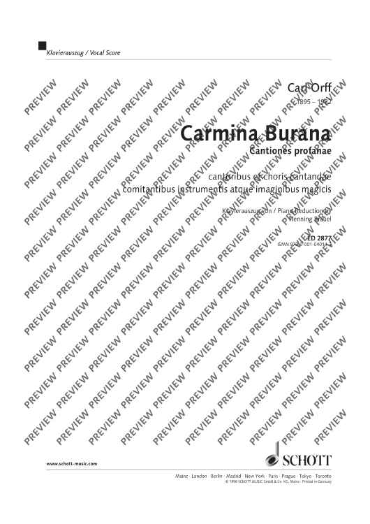 Digital Sheet Music for Carmina Burana - Piano Reduction by Carl Orff scored for Soloists (stbar), Mixed Choir (satb), Children's Choir And Orchestra; id:497659