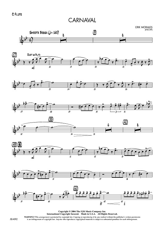 Digital Sheet Music for Carnaval - C Flute by Erik Morales scored for Jazz Ensemble; id:455878