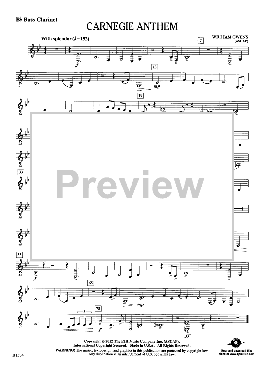 "Carnegie Anthem - Bb Bass Clarinet" Sheet Music by William Owens