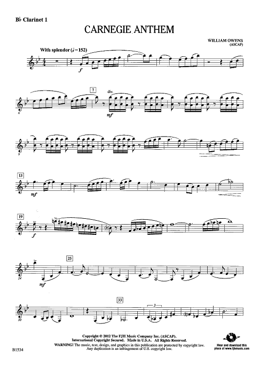 "Carnegie Anthem - Bb Clarinet 1" Sheet Music by William Owens