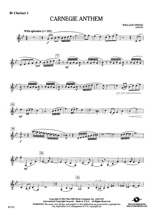 "Carnegie Anthem - Bb Clarinet 2" Sheet Music by William Owens