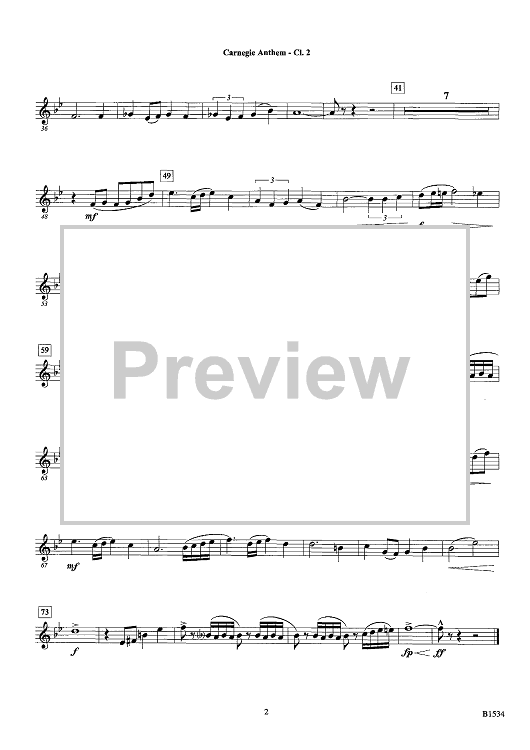 Digital Sheet Music for Carnegie Anthem - Bb Clarinet 2 by William Owens scored for Concert Band; id:440726