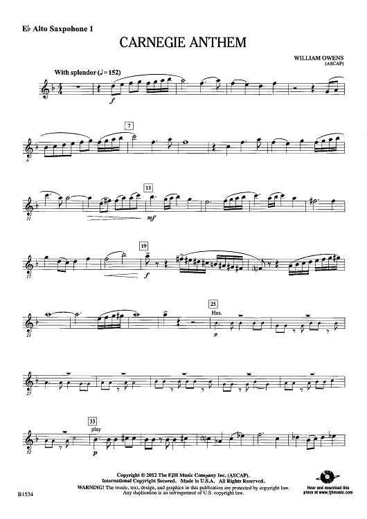 "Carnegie Anthem - Eb Alto Sax 1" Sheet Music by William Owens